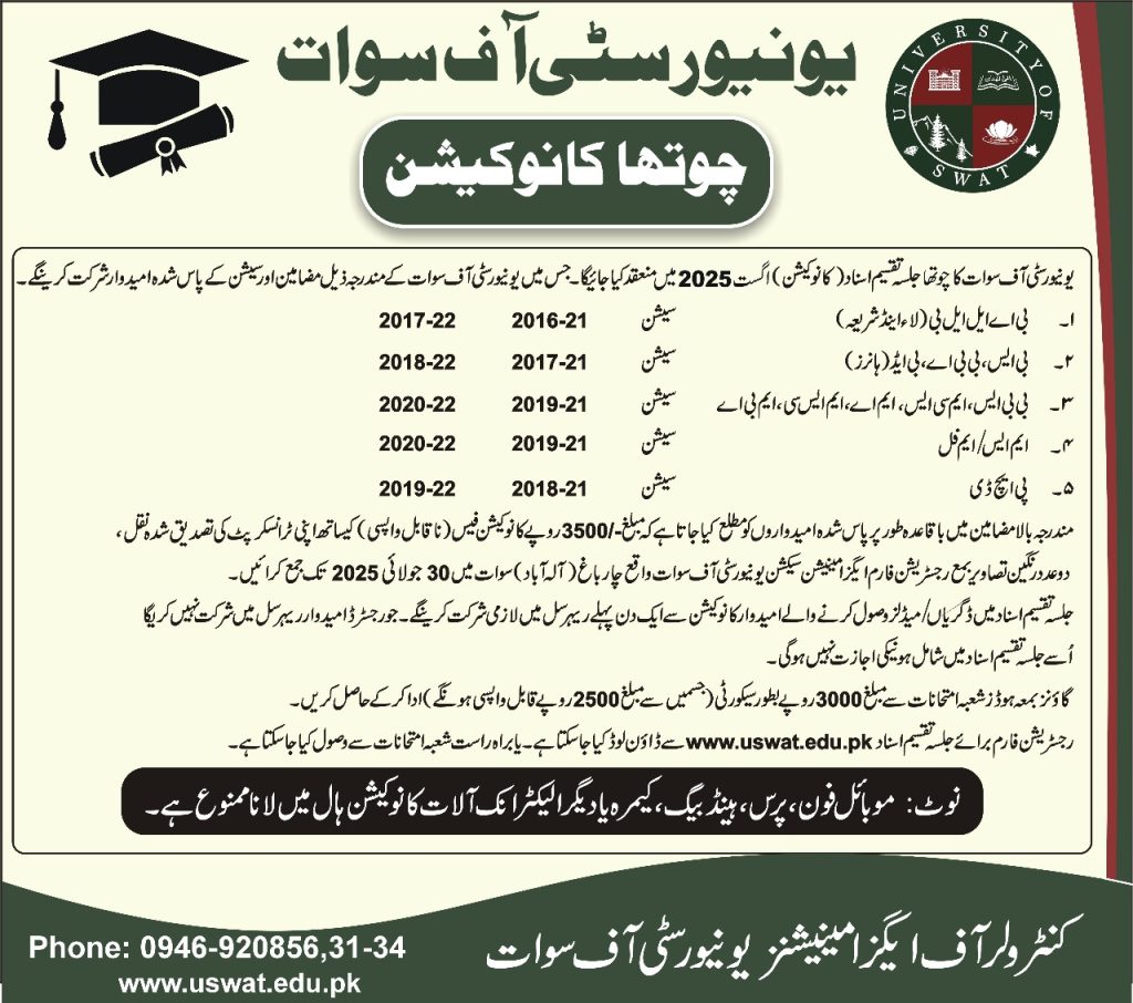 9. Please keep your University ID card and CNIC with you on the day of rehearsal and Convocation. Students and guests without original CNIC will not be allowed to enter.